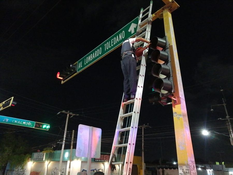 El Ayuntamiento de Benito Juárez a través de Ingeniería Vial realizan la Jornada de Rehabilitación de Semáforos, con la reparación de 32 cruceros semaforizados en las principales avenidas de la ciudad con lámparas LED.