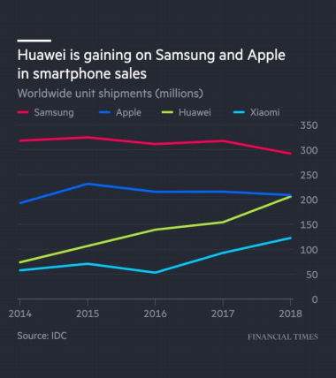 Esta compañía ha despuntado entre otras compañías tecnológicas chinas hasta situarse entre las primeras a nivel mundial en ventas e innovación tecnológica. En 2818 aumentó sus beneficios en un 25% frente al ejercicio anterior ganando en total 7.859 millones de euros. Según la consultora tecnológica IDC las ventas globales de móviles Huawei el primer trimestre de este año 2019 se sitúan en unos 59,1 millones de unidades, solo por debajo de los 71,9 millones de Samsung y superando los 36,4 millones de Apple; en el Estado español las ventas este primer trimestre alcanzaron 1,26 millones de unidades vendidas lo que sería aproximadamente uno de cada tres móviles.