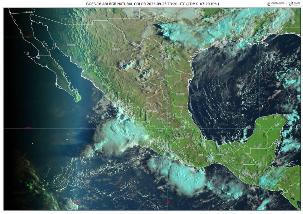 Ciudad de México, 25 de septiembre de 2023.- Ambiente templado y lluvias para Quintana Roo. Temperaturas máximas de 35 a 40 °C: Oaxaca, Chiapas, Tabasco, Campeche, Yucatán y Quintana Roo.