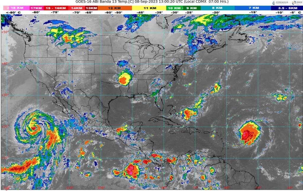 Canales de baja presión en el sureste del país y la Península de Yucatán, el monzón mexicano sobre el noroeste de la República Mexicana e inestabilidad en niveles altos de la atmósfera, aunado al ingreso de humedad del Océano Pacífico y Golfo de México, producirán lluvias fuertes a puntuales muy fuertes en Oaxaca, Chiapas, Veracruz y Campeche; chubascos con lluvias puntuales fuertes en el sur del territorio nacional, además de la Península de Yucatán.