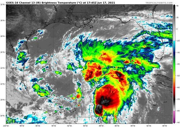El Centro Nacional de Huracanes informó que la nubosidad y tronadas asociadas con un área amplia de baja presión sobre el suroeste del Golfo de México se ha tornado mejor organizadas el día de hoy.