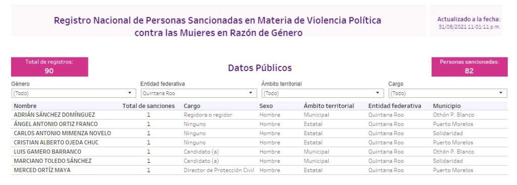 Con esta sentencia, Pedro Joaquín Delbois se unirá al registro que hasta hoy tenía 7 personas inscritas las cuales son: Adrián Sánchez Domínguez, Ángel Antonio Ortiz Franco, Carlos Antonio Mimenza Novelo, Christian Alberto Ojeda Chuc, Luis Gamero Barranco, Marciano Toledo Sánchez y Merced Ortiz Maya.