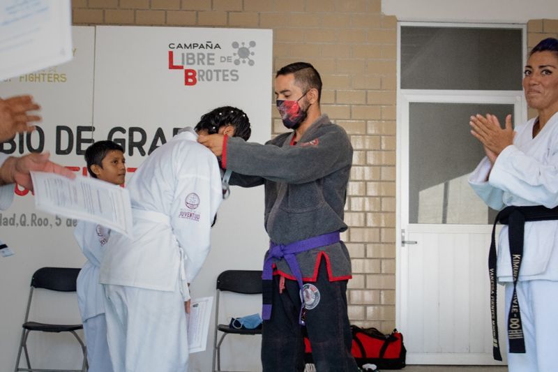 Con la presencia del director del Instituto de la Juventud del Municipio de Solidaridad, Antulio Álvarez Castañeda, así como de la directora y maestra en cinta negra de la academia Top Fighters Marcial Arts, Playa del Carmen, Vanessa Fuentes Moreno, testificaron el talento, esfuerzo y destreza de siete alumnos examinados, comprendidos entre las edades de 9 a 55 años, quienes aprobaron para pasar a un nuevo nivel.
