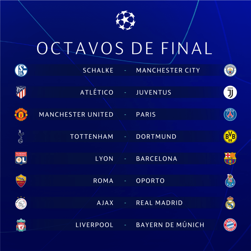 El sorteo de Octavos de la Champions League celebrado en Nyon, Suiza ha revelado cómo serán los cruces en la etapa de 16 equipos.
