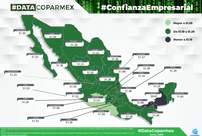 La Confederación Patronal de la República Mexicana (Coparmex) dio a conocer a través de la cuenta de twitter de su presidente Gustavo de Hoyos, que Quintana Roo y Campeche son los estados en que más se ha incrementado el pesimismo para la inversión, según los datos obtenidos en el estudio “Confianza Empresarial” que recopila Data Coparmex.