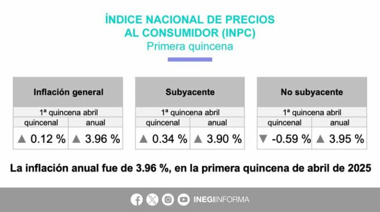 El Inegi reportó que la inflación anual en México desciende a 3.96 % en la primera quincena de abril