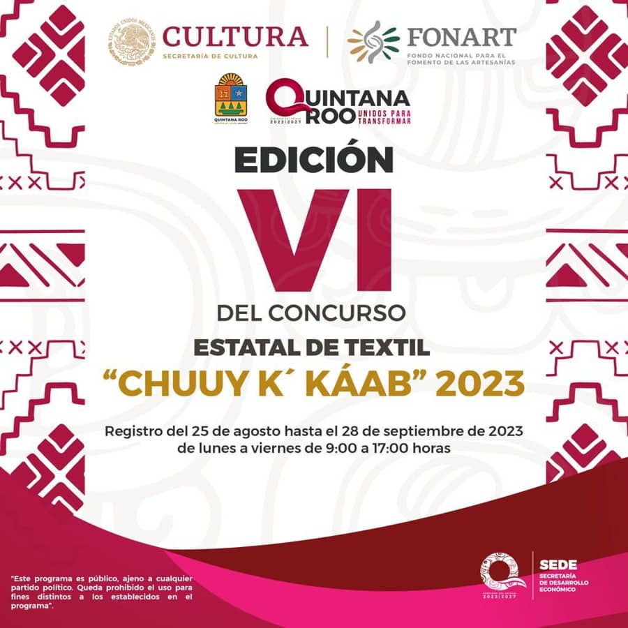 El Gobierno del Estado, en colaboración con el Fondo Nacional para el Fomento de las Artesanías (FONART), dieron a conocer la convocatoria del VI Concurso Estatal de Textil “Chuuy K’Káab” 2023.