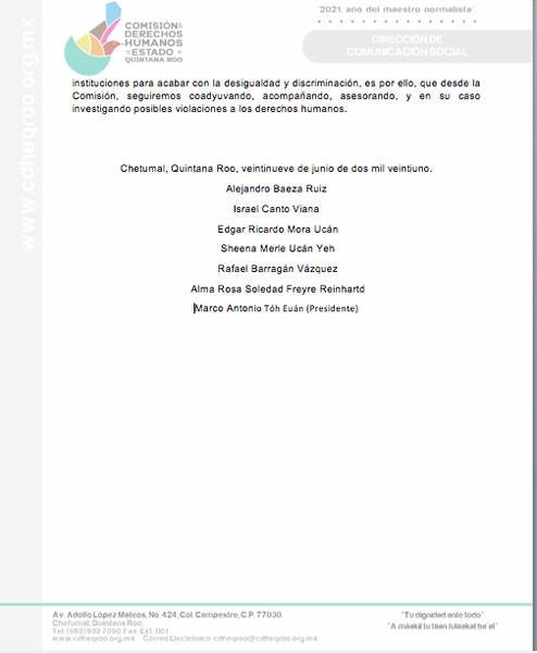 — Derechos Humanos QR (@cdhqroo) June 30, 2021
