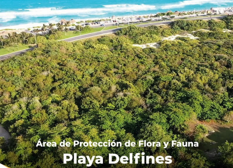 Playa Delfines alberga ecosistemas como la selva baja subperennifolia considerado como frágil y altamente vulnerable ante el efecto del crecimiento de la mancha urbana en zonas aledañas al sitio; alberga y salvaguarda 290 especies nativas de flora y fauna, que representan el 8.1 % de la biodiversidad reportada para el estado de Quintana Roo, de las cuales 11 son endémicas y 34 se enlistan en alguna categoría de riesgo conforme a la “Norma Oficial Mexicana NOM-059-SEMARNAT-2010.
