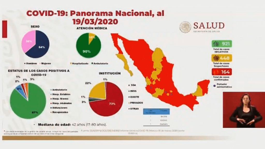 Este jueves, en conferencia de prensa, la Secretaría de Salud (SSA) reveló que ya hay 164 casos confirmados de coronavirus en México. Además, detalló que analizan 448 casos sospechosos.