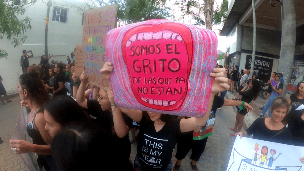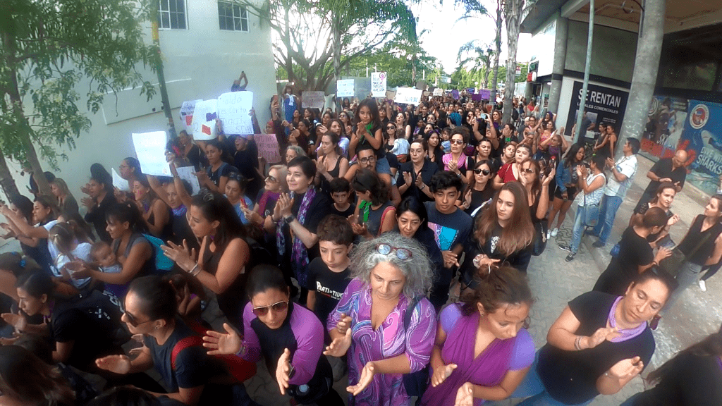 “Somos la voz de las que ya no están”, se lee en la lona y en las voces de las solidaridades que cimbra corazones, que muestra la lascerante fragilidad de la mujer en Quintana Roo, y del dolor de los seres queridos de las féminas asesinadas, torturadas, ultrajadas, descuartizadas.