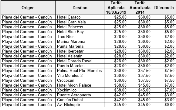 Derivado de la situación presentada en el ajuste de tarifas que la empresa Playa Express y otras realizaron el día lunes 18 de marzo de 2019, el Instituto de Movilidad del Estado de Quintana Roo, informa a usuarios del servicio de transporte público de concesión estatal y ciudadanos en general; que dicha instancia hasta el momento no ha autorizado ningún tipo de incremento a la tarifa vigente, establecida en el Periódico Oficial (PO) del Estado de Quintana Roo, en la publicación extraordinaria, número 100, tomo III, de la octava época, del año 2014.