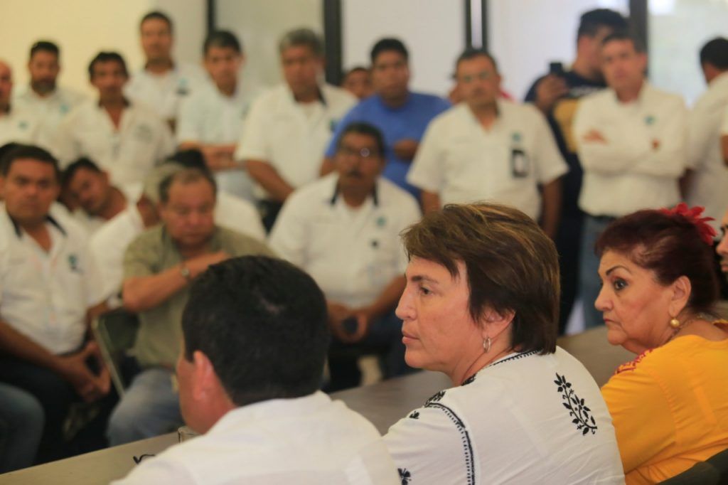 Desde temprana hora, una comitiva conformada por autoridades del Ayuntamiento y del Gobierno del Estado, a la que se sumó más tarde la presidenta municipal, Laura Beristain Navarrete, dialogó con representantes del sindicato de taxistas “Lázaro Cárdenas del Río” respecto a la inconformidad de los primeros por la operación de los moto taxis en la zona poniente de Playa del Carmen.