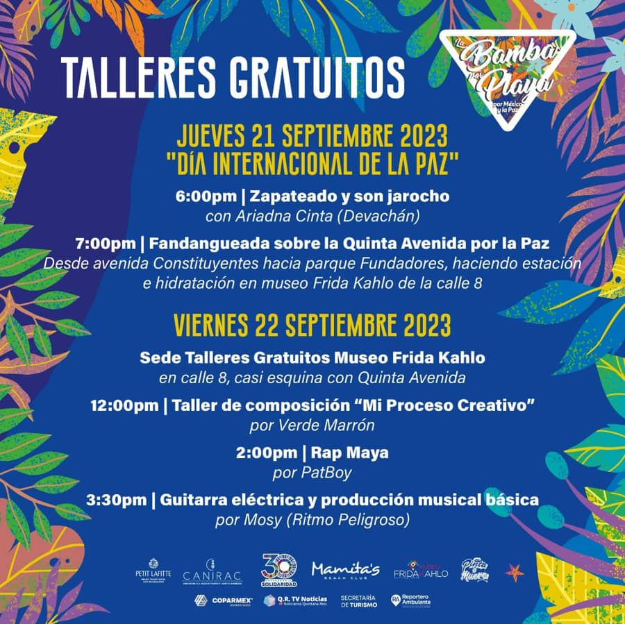 Playa del Carmen, Quintana Roo; 19 de septiembre de 2023.- Estos son los talleres gratuitos en “La BAMBA por Playa 2023”.