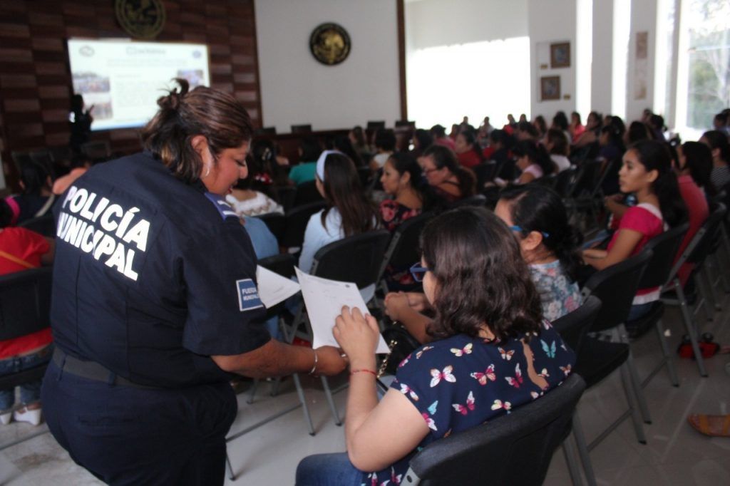 La funcionaria recalcó el compromiso de la Dirección General de Seguridad Pública y Tránsito de trabajar de la mano de la sociedad para consolidar un municipio en paz con la difusión de medidas de prevención y la participación ciudadana en las escuelas, además de la denuncia.