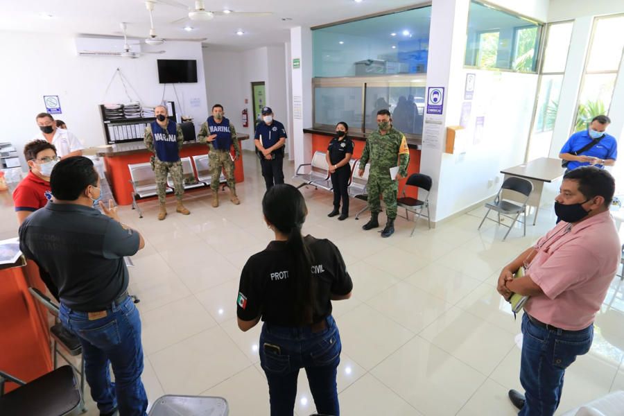 Como parte de las acciones de coordinación interinstitucional, el secretario presidencial, Javier Medina Malagón y el titular de la Secretaría de Protección Civil, Prevención de Riesgos y Bomberos, Francisco Poot Kauil, participaron en una reunión con el gobernador del estado, Carlos Joaquín González y alcaldes, en seguimiento a la trayectoria de este fenómeno meteorológico.