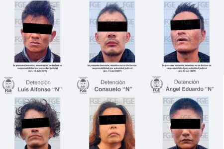 Los detenidos fueron identificados como José Guadalupe “N”, Luis Alfonso “N”, Ángel “N”, Cristopher “N”, Ángel Eduardo “N” y Consuelo “N”.