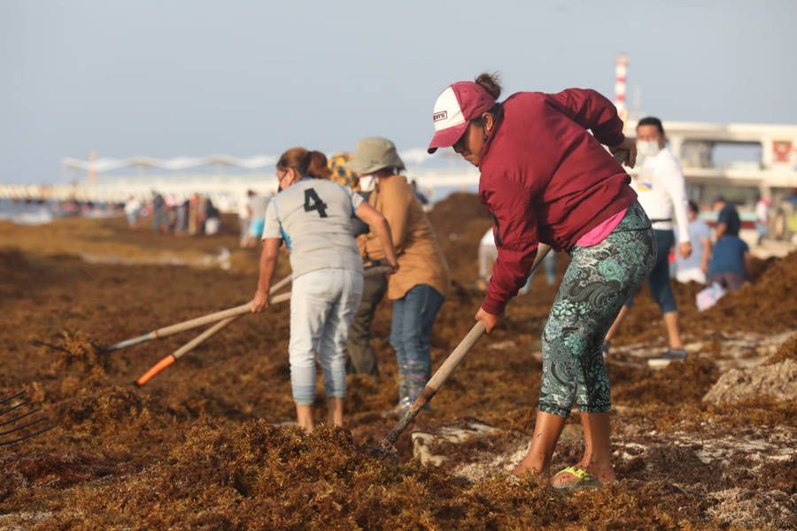 A este esfuerzo local, cabe mencionar, se suman las acciones realizadas por la Secretaría de la Marina (SEMAR), la cual a través de buques sargaceros colocados en aguas someras continúa en su misión de retener la alga marina que amenaza los arenales municipales.