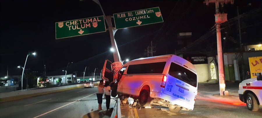 El conductor de un colectivo foráneo de la ruta Playa-Tulum, quedó prensado dentro de su unidad marcado con el número económico 03, al chocar de frente contra un anuncio tipo bandera entre el puente vehicular y el bulevar, por lo que los bomberos tuvieron que usar las “quijadas de la vida”, para poder libéralo, su acompañante también resultó lesionada.