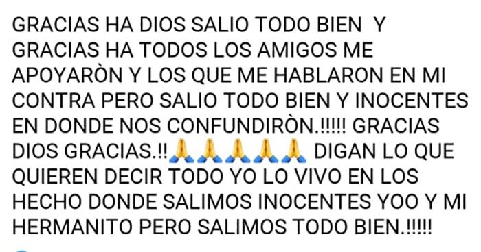 Roberto “K” que fue detenido junto con su hermano, aclaró a través de sus redes sociales que fueron capturados por error, “nos confundieron” manifestó y agradeció a sus familiares y amigos por el apoyo mostrado hacia los hermanos “K”.