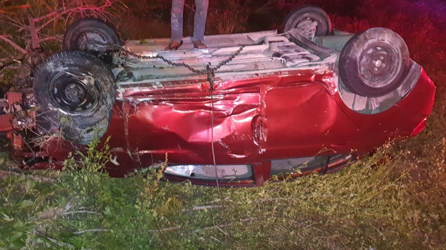 El vehículo aparentemente tipo Chevrolet Aveo color rojo acabo volcado con las llantas al aire, y completamente destrozado, automovilistas que pasaban alrededor de las 2:20 de la madrugada por la zona dieron aviso a la línea de emergencia 911.