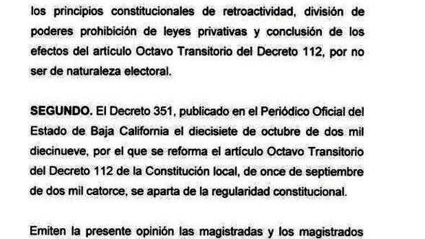 El Tribunal Electoral del Poder Judicial de la Federación consideró que la reforma aprobada por el Congreso de Baja California que permite ampliar de dos a cinco años el mandato de Jaime Bonilla como gobernador es inconstitucional.