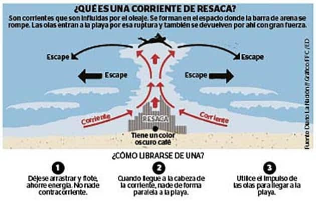 Por ello, es importante que una vez que se sientan arrastrados por el mar, no se debe nadar contra corriente. Primero, hay tratar de tener calma, localizar la corriente e intentar nadar fuera de ella e incluso, en ciertas ocasiones alejándose mucho más de la orilla del mar y una vez que sienta el cansancio, es necesario intentar flotar ya que el movimiento de las aguas, hace que el impuso de las olas puede expulsar hasta acercarlos a la orilla del mar.
