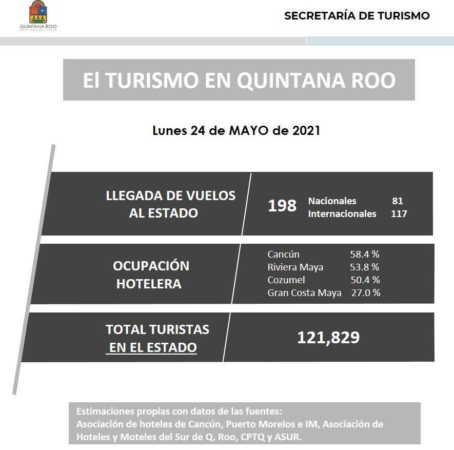 Además, través del reporte semanal de la Sedetur, se dio a conocer cómo Cancún se mantiene como primero en temas de ocupación hotelera con 58. 4 por ciento, seguido de la Riviera Maya con 53. 8 por ciento, Cozumel con 50. 4 por ciento y Gran Costa Maya con 27 por ciento.