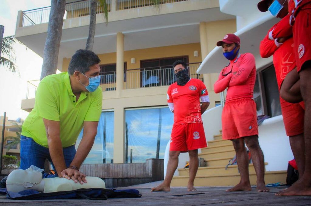 Informó que los guardavidas de Solidaridad son de los más capacitados en la entidad, ya que cada año reciben cursos de actualización en temas diversos como primeros auxilios, protocolos de RCP (resucitación cardiopulmonar) en tiempos de pandemia, así como en manejo del DEA (conocimiento de desfibrilador automático externo), con base en los reglamentos de seguridad y salvamento acuático.