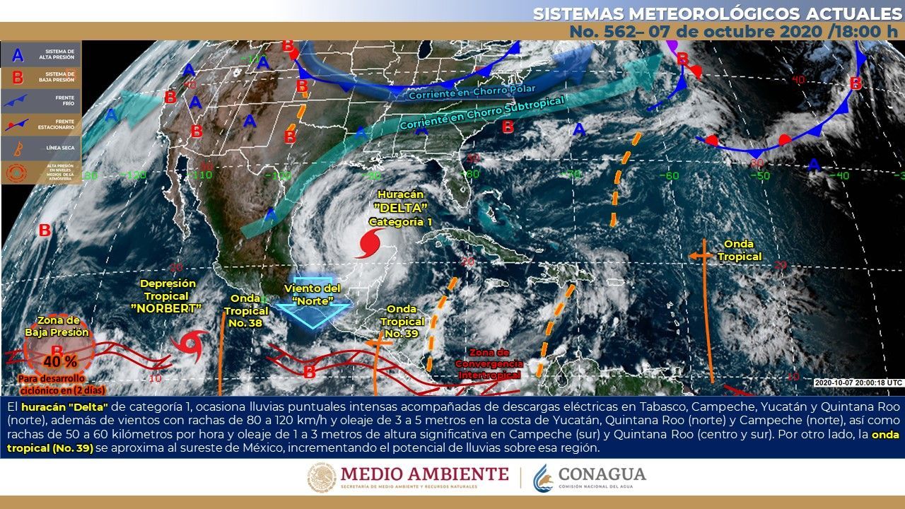 Esta noche, el huracán “Delta” de categoría 1, continuará moviéndose sobre el Golfo de México, alejándose gradualmente del país.