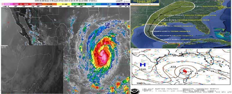 Este día, el huracán “Delta” se desplazará sobre el Golfo de México, con trayectoria hacia Luisiana, E.U.A.; su extensa circulación, en interacción con un canal de baja presión, originará lluvias muy fuertes en Tabasco y Chiapas, así como lluvias fuertes en Tamaulipas y la Península de Yucatán, además de vientos con rachas de 50 a 60 km/h y oleaje de 1 a 2 metros a lo largo del litoral del Golfo de México. La onda tropical No. 39 se desplazará sobre el Golfo de Tehuantepec y en interacción con la abundante entrada de humedad del Océano Pacífico, incrementará la probabilidad de lluvias con tormentas eléctricas sobre los estados del sur y sureste de la República Mexicana. Finalmente, se mantendrá ambiente frío durante la mañana y noche en gran parte del país, además de temperaturas por debajo de los 5°C y heladas en zonas altas del norte, centro y oriente del territorio nacional.