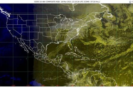 Península de Yucatán: Cielo nublado por la tarde, con lluvias puntuales fuertes en la región. Ambiente templado por la mañana y cálido a caluroso durante el día. Evento de “Norte” con rachas de 50 a 70 km/h en la Sonda de Campeche.