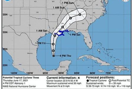 La Comisión Nacional del Agua (Conagua) informó que a las 16:00 horas de hoy, se formó el Potencial Ciclón Tropical “Tres” en el Golfo de México. Su centro se localizó a 305 km al noroeste de Celestún, Yucatán, con vientos máximos sostenidos de 45 km/h, rachas de 65 km/h y desplazamiento hacia el norte a 15 km/h.
