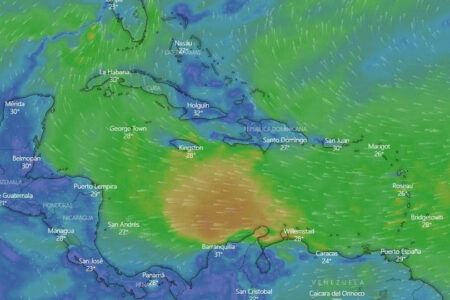 Los vientos dominantes y en el nivel significativo de 850 milibares (aproximadamente a 1500 de altitud), las corrientes de aire en la porción central del mar Caribe será del este de 40 a 50 kilómetros por hora, pero frente a las costas del estado de Quintana Roo, disminuyen de 15 a 25 kilómetros por hora y cambia del Este al noreste, esto implica de la cantidad de dióxido de azufre se va hacia el norte del Estado, Canal de Yucatán y occidente de la isla de Cuba.