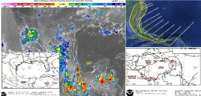 cielo parcialmente nublado por la mañana, incremento de nublados por la tarde con intervalos de chubascos y descargas eléctricas en Campeche, Yucatán y Quintana Roo. Ambiente caluroso. Viento del sureste de 15 a 30 km/h en la región, además de rachas de 40 km/h en Campeche y Yucatán.