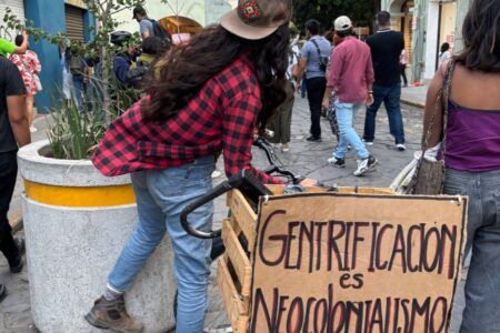 El fin de semana se realizó la primera marcha contra gentrificación en la ciudad de Oaxaca con demandas dirigidas al Gobierno, sector empresarial y extranjeros para reclamar y hacer respetar el territorio oaxaqueño.