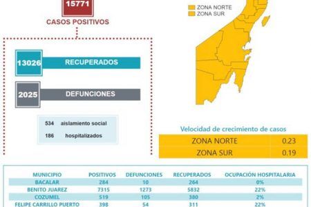 Llega Quintana Roo a 15 mil 771 casos positivos.