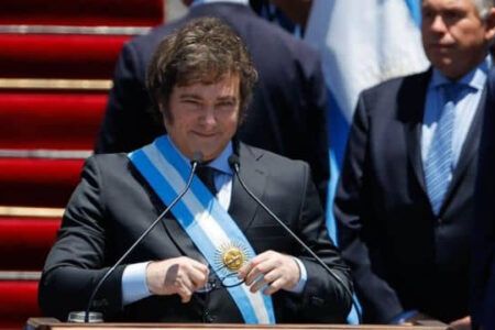 “Hoy comienza una nueva era en Argentina, una era de paz y prosperidad, una era de crecimiento y desarrollo, una era de libertad y progreso”, aseguró Milei en su discurso. “Ningún gobierno ha recibido una herencia peor que la que estamos recibiendo nosotros”, añadió.