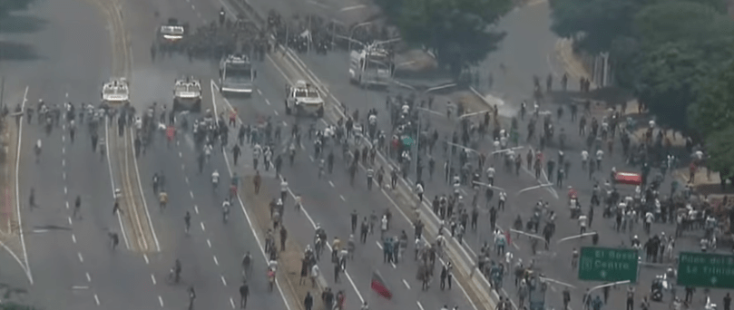 Tras los llamamientos de Guaidó, en diferentes zonas de Caracas se produjeron incidentes entre grupos opositores y chavistas. El ministro de Defensa, Vladimir Padrino López, afirmó posteriormente que los militares sublevados se replegaron en la plaza Altamira, bastión de la oposición venezolana.