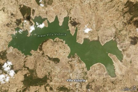 La Administración Nacional de Aeronáutica y el Espacio de Estados Unidos (NASA), informó que fotografías del Generador Operacional de Imágenes de Tierra (OLI, por sus siglas en inglés) en Landsat 8, muestran que la Presa Villa Victoria, uno de los principales suministros de agua para el Valle de México sigue a la baja y cuenta con apenas un tercio de almacenamiento.