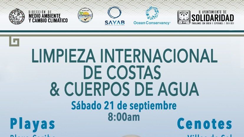 El municipio de Solidaridad invita a la Limpieza Internacional de Costas y Cuerpos de Agua que se llevará a cabo el sábado 21 de septiembre a las 8:00 am.