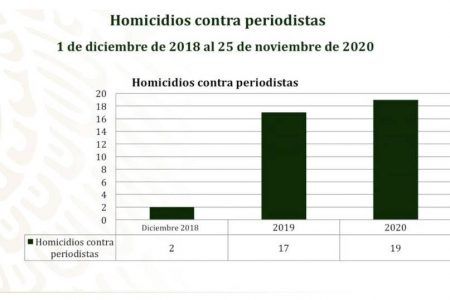 También destacó que desde 2017 a la fecha han sido asesinados seis periodistas incorporados al Mecanismo Nacional de Protección a Periodistas mexicanos, de los cuales hay detenidos por tres de esos casos.
