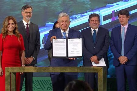 “Las empresas que tuvieron el contrato son de Canadá, de Francia y lo más destacado este los trenes se van a construir en México, porque las dos empresas tienen plantas en nuestro país, de modo que se van a generar muchos empleos, de manera especial en Ciudad Sahagún, Hidalgo”, declaró AMLO.