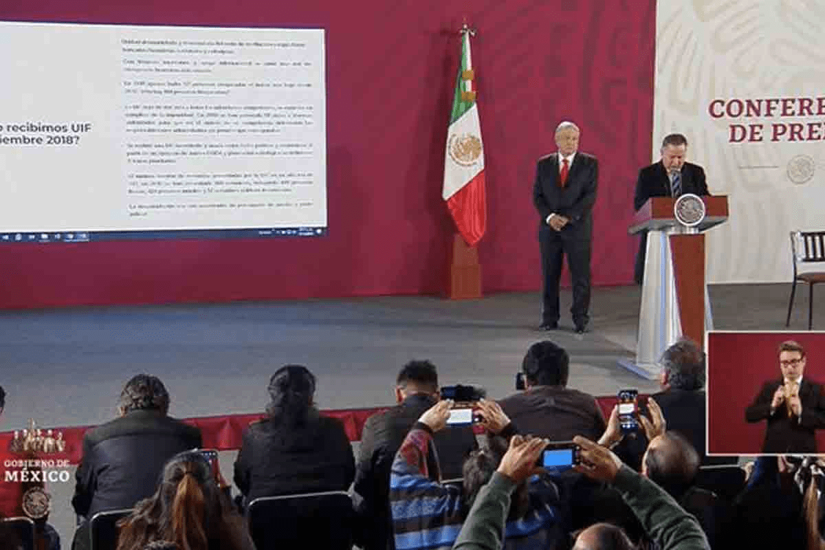 El gobierno de Andrés Manuel López Obrador ha presentado 173 denuncias por lavado de dinero que involucran depósitos por 321 mil 154 millones de pesos, 2 mil 043 millones de dólares y 118 mil euros, hasta el pasado 30 de enero.