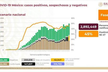 Autoridades de la Secretaría de Salud informaron que al 01 de diciembre de 2020 hay 1,122,362 casos confirmados a Covid-19.
