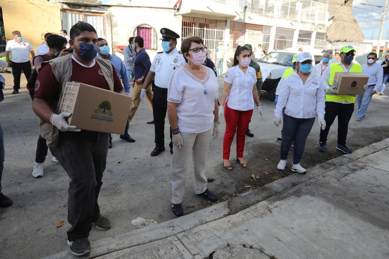 Cabe mencionar que en la entrega de los apoyos alimenticios a los sectores más vulnerables participan personal del Gobierno del Estado, direcciones e institutos del Ayuntamiento de Solidaridad, elementos de la Guardia Nacional, así como la policía municipal y estatal.