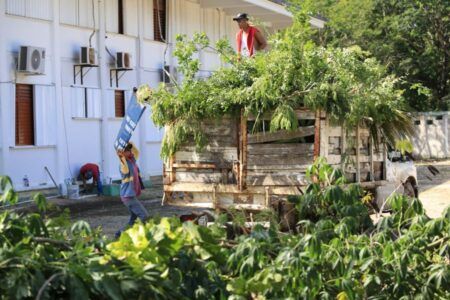 Esta mañana fue el turno de la escuela primaria “Jaime Torres Bodet”, en el fraccionamiento La Guadalupana, donde acudieron los padres de familia, personal docente y las brigadas de Servicios Públicos Municipales, para realizar labores de chapeo, jardinería, poda de árboles y retiro de basura, con el objetivo de mejorar las condiciones de dicha escuela en beneficio de los estudiantes que asisten ya a clases presenciales.