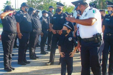 En su cumpleaños número 7, Jesús Daniel del Ángel Pérez, cumplió el sueño que tenía de convertirse en policía municipal de Solidaridad. La mañana del 19 de octubre durante el pase de lista que se lleva a cabo en la Secretaría de Seguridad Pública y Tránsito Municipal, el titular de la corporación, comandante Jorge Robles Aguilar, lo nombró “Policía Honorario” por un día.
