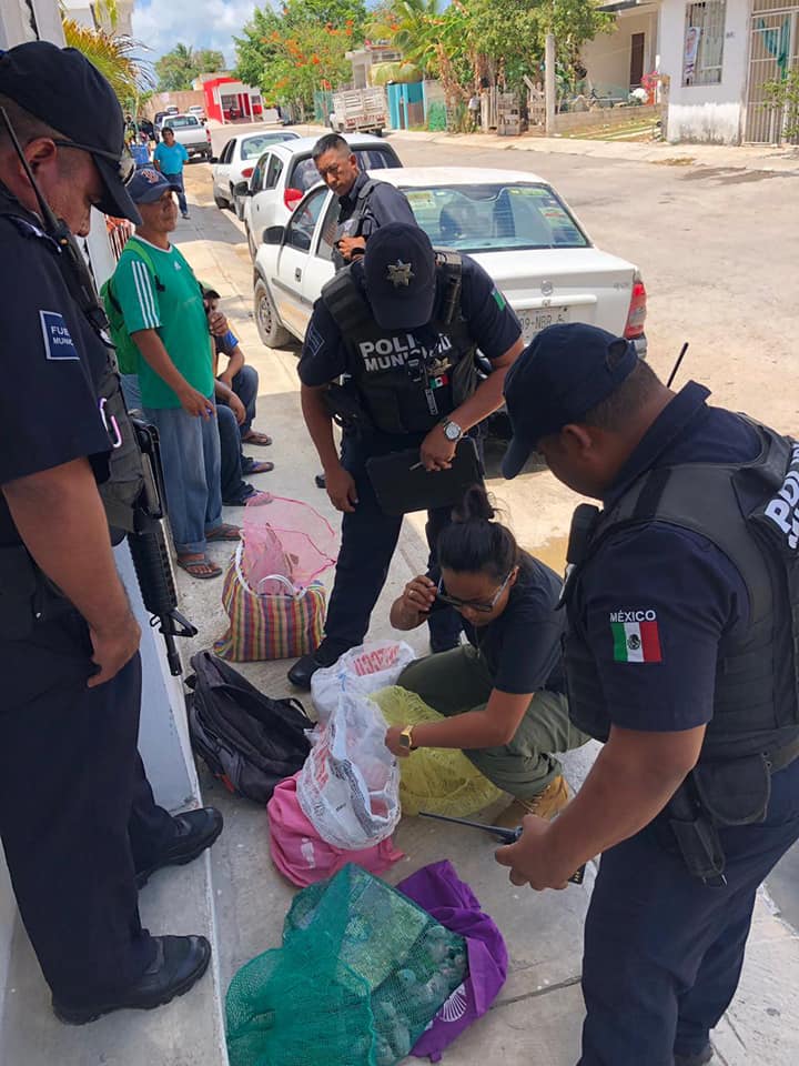 Un grupo de personas que se dedican a la venta de loros crías y adultos fueron detenidos por las autoridades en posesión de más de 20 animales en las calles de Playa del Carmen.