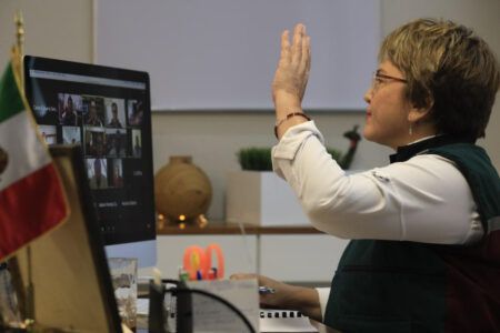 La sesión se llevó a cabo de forma virtual, donde se señala que dicho predio consta de una superficie de 494.79 metros cuadrados y que se ubica en la avenida Flor de Romero, súpermanzana 002, manzana 062, lote 001, Fraccionamiento Misión de las Flores. Dicha donación está condicionada a que el inmueble se limita al uso-destino para la construcción de una sucursal del Banco del Bienestar.